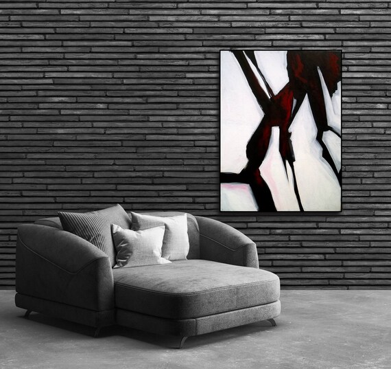 Black And White Abstract Art Abstract Expressionism Large Huge Modern Art 36x48 Black And White Red By John Michael